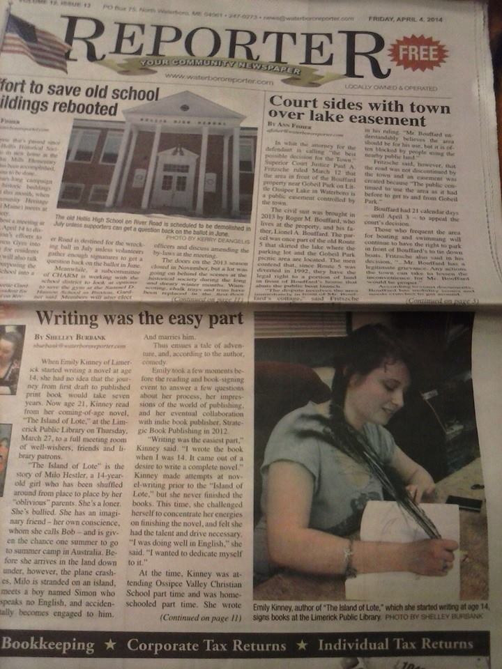 Thanks for letting me share with you. I’m in the process of trying to set up more. Wish me luck and come out and see me when you do! I would love to make your acquaintance. You can find The Island of Lote on Amazon, Goodreads, and Barnes and Noble .com. Also at my website, http://www.emilykinneyauthor.com.