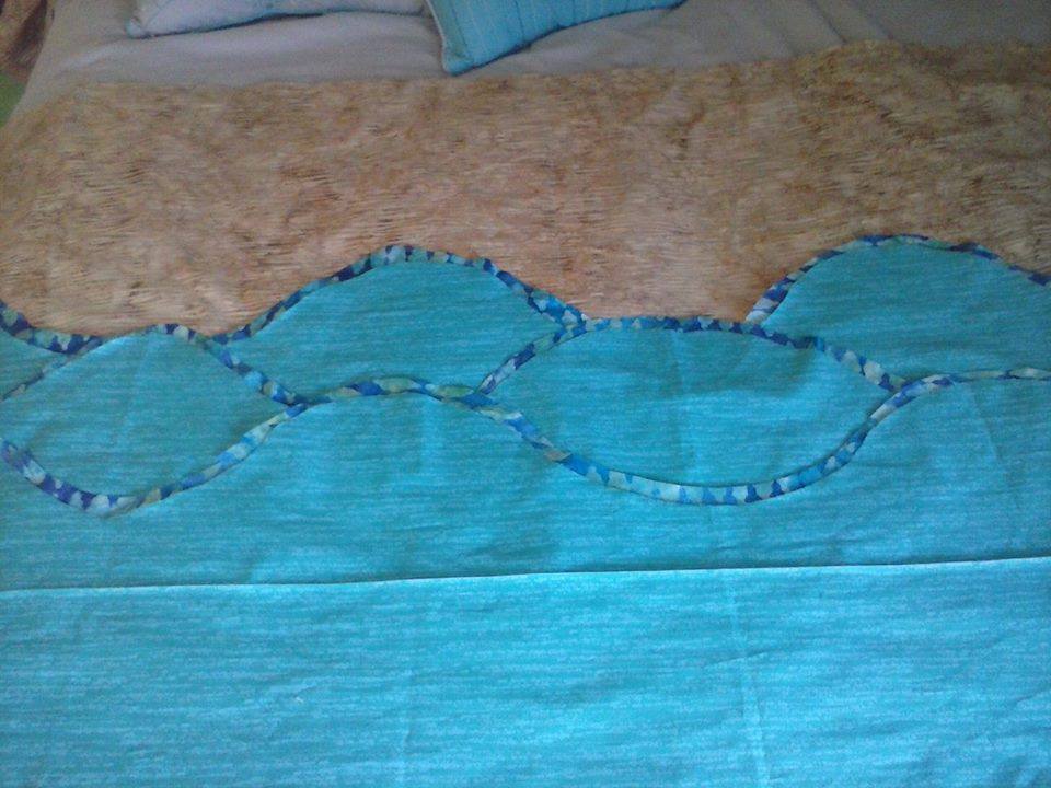 This is the table-cloth I made for the book signing. I wanted it to look like waves crashing onto sand, since the story takes place on a tropical island.